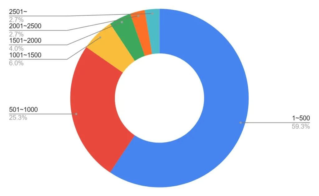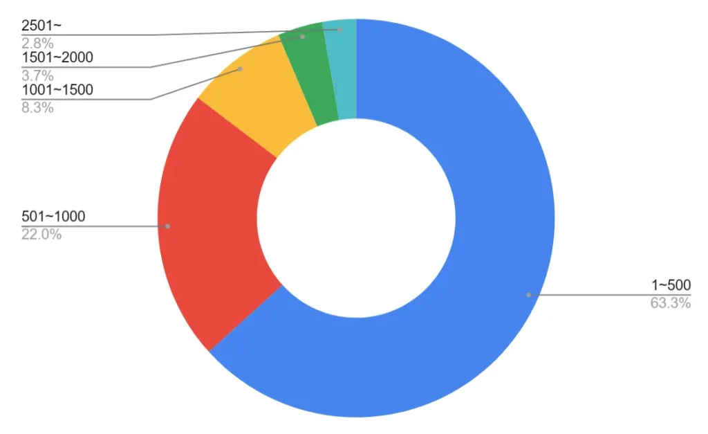 1~500枚までが約62.4%、501~1,000枚までが約24.8%となっているため、全体の87.2%が下位STで終わってしまうという結果です。